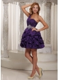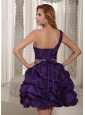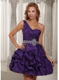 Eggplant Purple One Shoulder Beading and Pick-ups Mini-length Prom Dress For Party