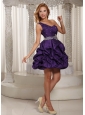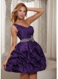Home >  Prom Dresses >  Unique Prom Dresses > Eggplant Purple One Shoulder Beading and Pick-ups Mini-length Prom Dress For Party