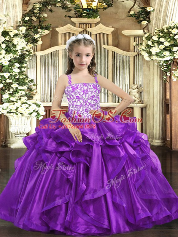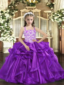 Home >  Special Occasion Dresses >  Lovely Little Girl Pageant Dresses > Eggplant Purple Sleeveless Floor Length Beading and Ruffles Lace Up Little Girls Pageant Dress