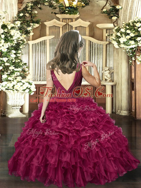 Home >  Special Occasion Dresses >  Beautiful Kids Pageant Dresses > Eggplant Purple Sleeveless Organza Backless Pageant Dress for Womens for Party and Sweet 16 and Wedding Party