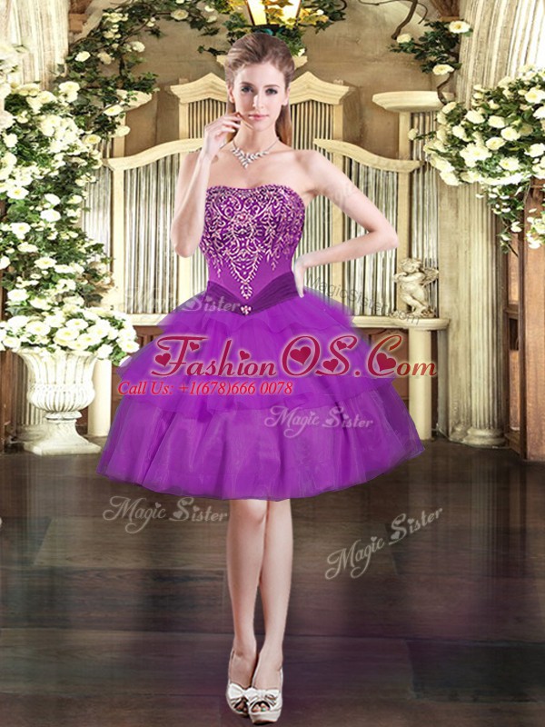 Eggplant Purple Sweet 16 Quinceanera Dress Military Ball and Sweet 16 and Quinceanera with Beading and Ruffled Layers Strapless Sleeveless Lace Up
