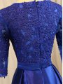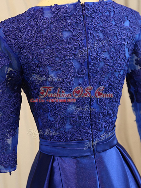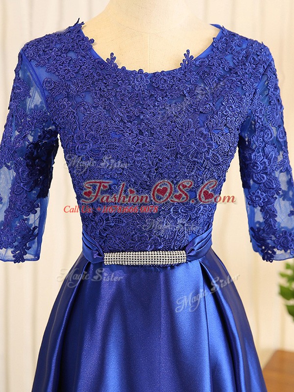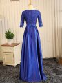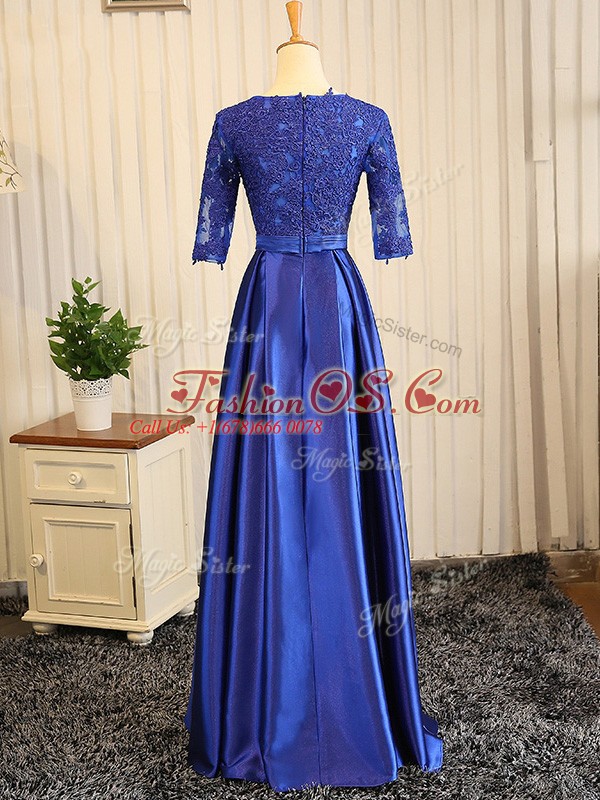 Elastic Woven Satin Half Sleeves Floor Length Prom Dress and Embroidery and Belt