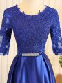 Home >  Prom Dresses >  Fashionable Prom Dresses > Elastic Woven Satin Half Sleeves Floor Length Prom Dress and Embroidery and Belt
