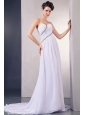 Home >  Wedding Dresses >  Latest Wedding Dresses > Elegant 2013 Wedding Dress With Appliques and Ruching Sweetheart Court Train Chiffon For Custom Made