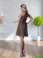 Elegant 2015 Halter Top Ruching Mini Length Prom Dress in Brown