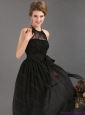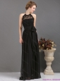Elegant 2015 Halter Top Sash Prom Dress in Black