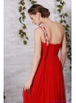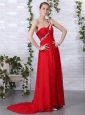 Elegant 2015 One Shoulder Red Prom Dress with Beadings and Brush Train