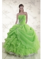 Elegant 2015 Pick Ups and Beading Quince Gowns in Spring Green