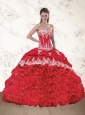Elegant 2015 Red Strapless Quinceanera Dresses with Appliques