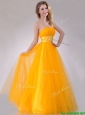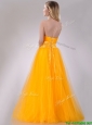 Elegant A Line Beaded Tulle Gold Prom Dress with Lace Up