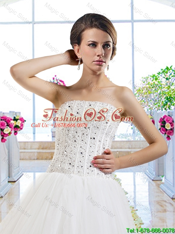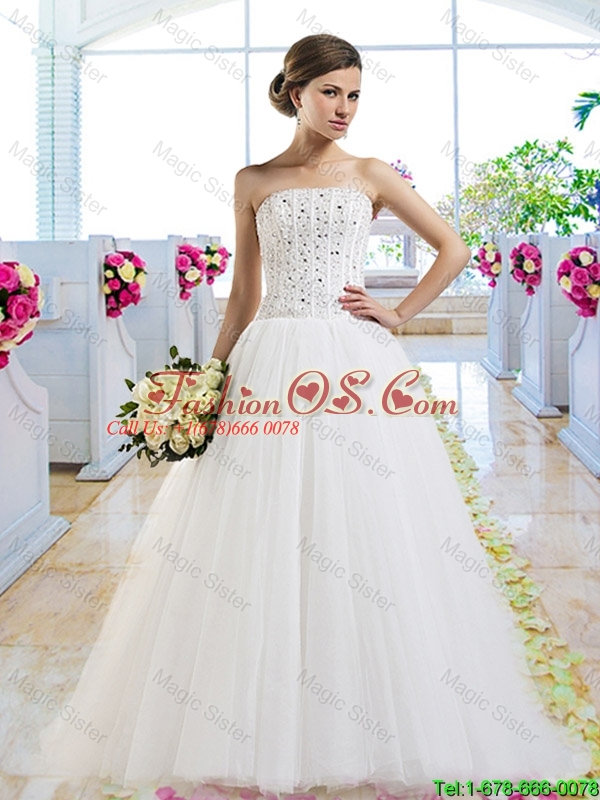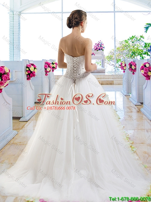 Elegant A Line Brush Train Wedding Dresses with Beading