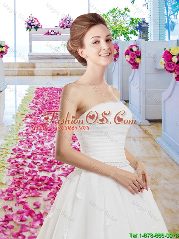 Elegant A Line Strapless Wedding Gowns with Appliques