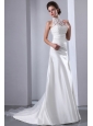 Home >  Wedding Dresses >  Popular Wedding Dresses > Elegant A-line High-neck Court Train Taffeta and Organza