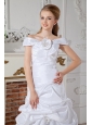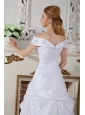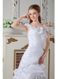 Elegant A-line Off The Shoulder Wedding Dress Court Train Taffeta Hand Made Flowers