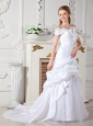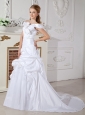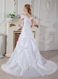 Home >  Wedding Dresses >  Elegant Wedding Dresses > Elegant A-line Off The Shoulder Wedding Dress Court Train Taffeta Hand Made Flowers