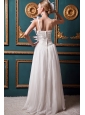 Elegant A-line One Shoulder Brush Train Chiffon Ruffles Wedding Dress