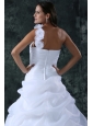 Elegant A-Line Organza Brush Train Zipper Up Wedding Dress with Ruching
