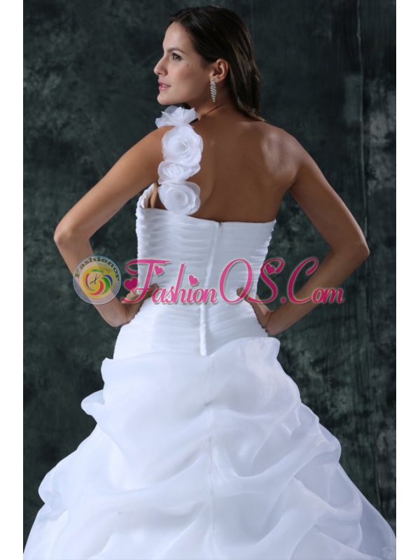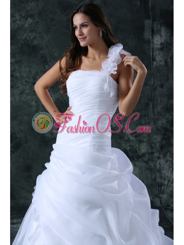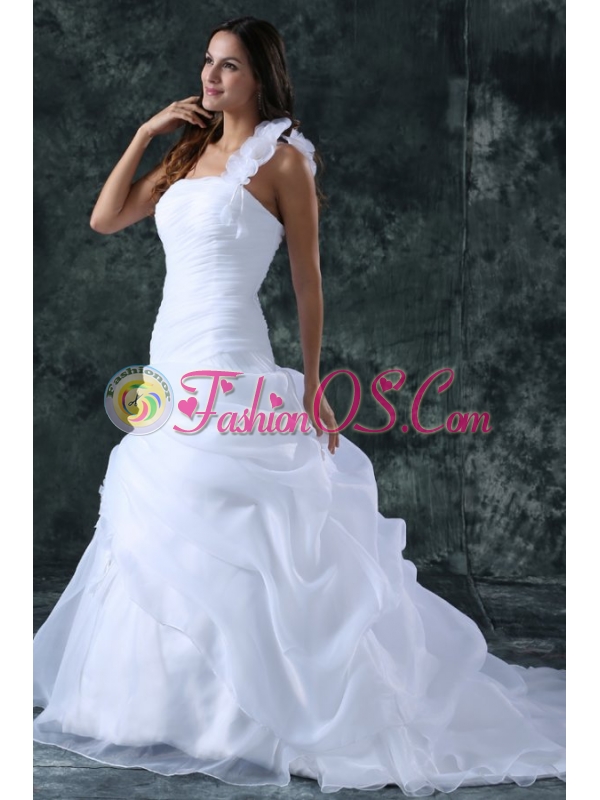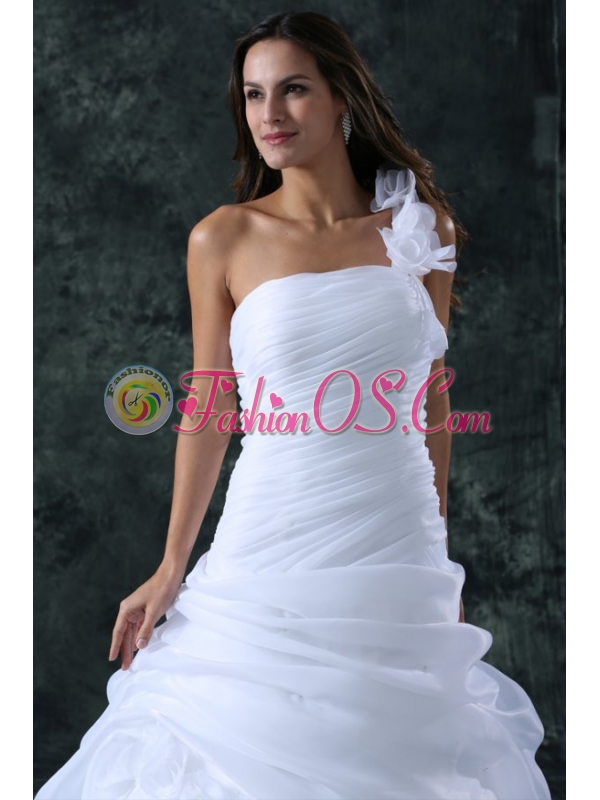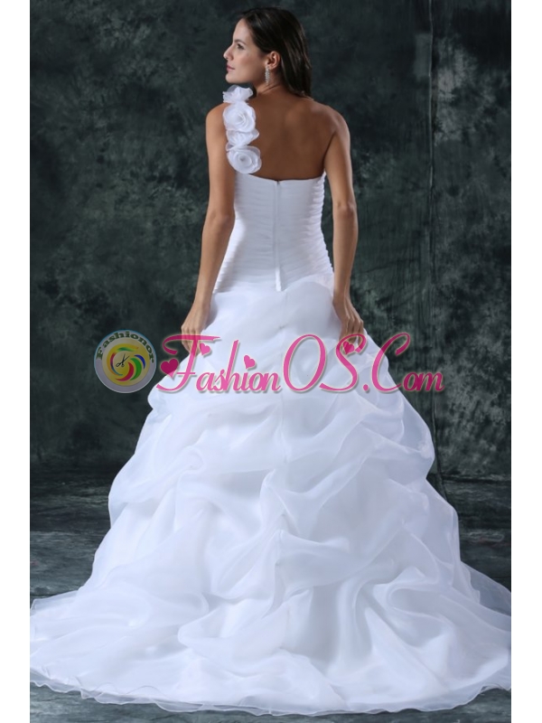 Home >  Wedding Dresses >  Perfect Wedding Dresses > Elegant A-Line Organza Brush Train Zipper Up Wedding Dress with Ruching