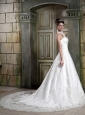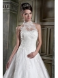 Elegant A-Line / Princess Halter Chapel Train Satin and Lace Appliques Wedding Dress