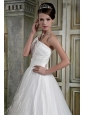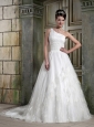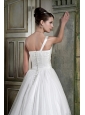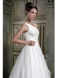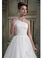 Elegant A-Line / Princess One Shoulder Court Train Satin / Tulle Ruch Wedding Dress