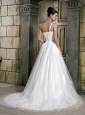 Elegant A-Line/Princess One Shoulder Court Train Satin/Tulle Ruch Wedding Dress 262.89 This gorgeous wedding dress features a full length style that flows a trailing. A single strap filled with a shimmering array of pleat contours the bust and waist line.This beautiful dress will make your special day complete.This is a relaxed gown that can be styled many ways because of the refined shape. The beautiful ostrich feather on the hem makes the dress look more noble. This would be a great wedding gown that fits many styles.