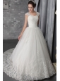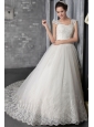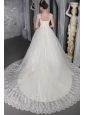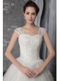 Elegant A-Line / Princess Square Neck Chapel Train Organza Appliques Wedding Dress