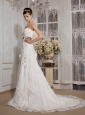 Elegant A-Line / Princess Strapless Court Train Satin and Lace Appliques Wedding Dress