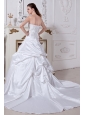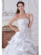 Elegant A-line / Princess Strapless Wedding Dress Embroidery Court Train Taffeta