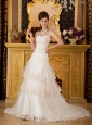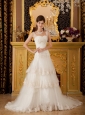 Elegant A-line / Princess Straps Court Train Tulle Lace and Beading Wedding Dress