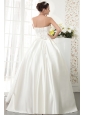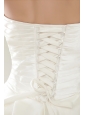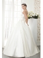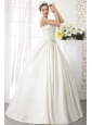 Stunning and sophisticated are two words to perfectly describe this white wedding dress. The elegant bodice with a sweetheart neckline features intricate beadwork and exquisite ruching decorations. The full A-line satin skirt is pure with no redundant, and an adjustable lace up in the back completes this unique design. You are sure to be the most beautiful bride.