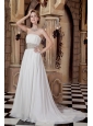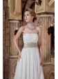 Elegant A-line Strapless Beading Wedding Dress Court Train Chiffon