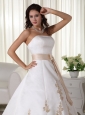 Elegant A-line Strapless Court Train Satin Appliques Quinceanera Dress
