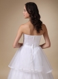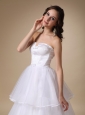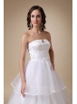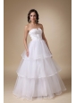 Elegant A-line Strapless Floor-length Satin and Organza Layers Wedding Dress