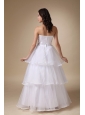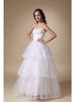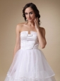 Special and Wonderful! The straightline with a little hollow and a waistband is fixed with a cute butterfly tie, which add the extra lively effect on the bodice and the skirt is made of tiers of sheer tulle, assuming a layers of cake, which add the extra interest on the bodice. A hidden zipper makes for easy off and on and secures the dress in place. All eye will be on you in this gorgeous white wedding dress.