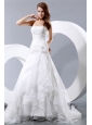 Home >  Wedding Dresses >  Low Cost Wedding Dresses > Elegant A-line Strapless Low Cost Wedding Dress Court Train Taffeta and Organza Ruch and Hand Made Flower