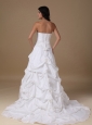 Home >  Wedding Dresses >  Low Cost Wedding Dresses > Elegant A-line Strapless Low Cost Wedding Dress Taffeta Appliques Court Train