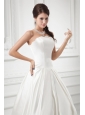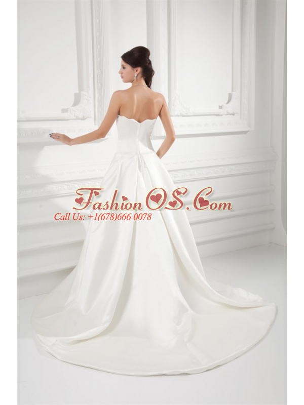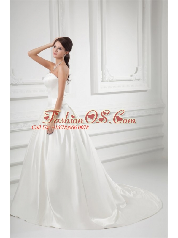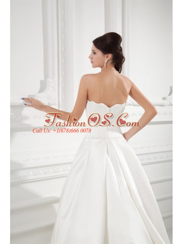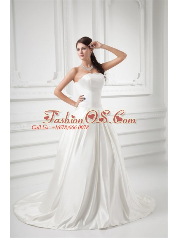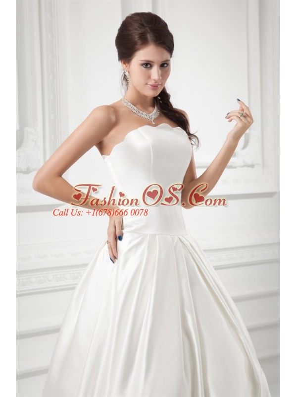 Elegant A-line Strapless Sweep Train Wedding Dress with Satin