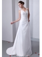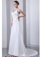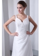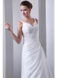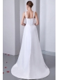 Elegant A-line Straps Wedding Dress Ruch and Beading Court Train Satin