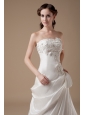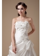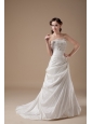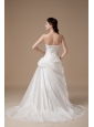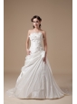 Elegant A-line Sweetheart Low Cost Wedding Dress Taffeta Appliques Brush Train