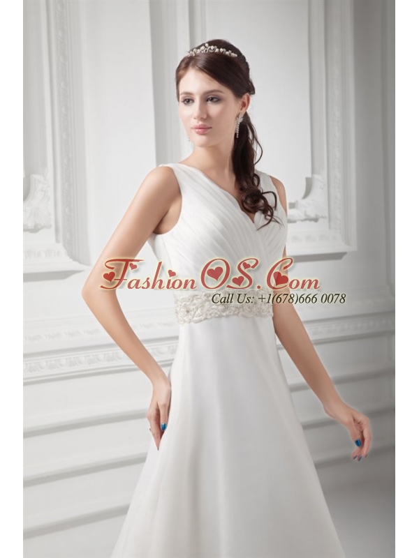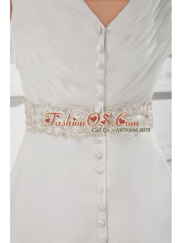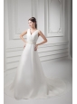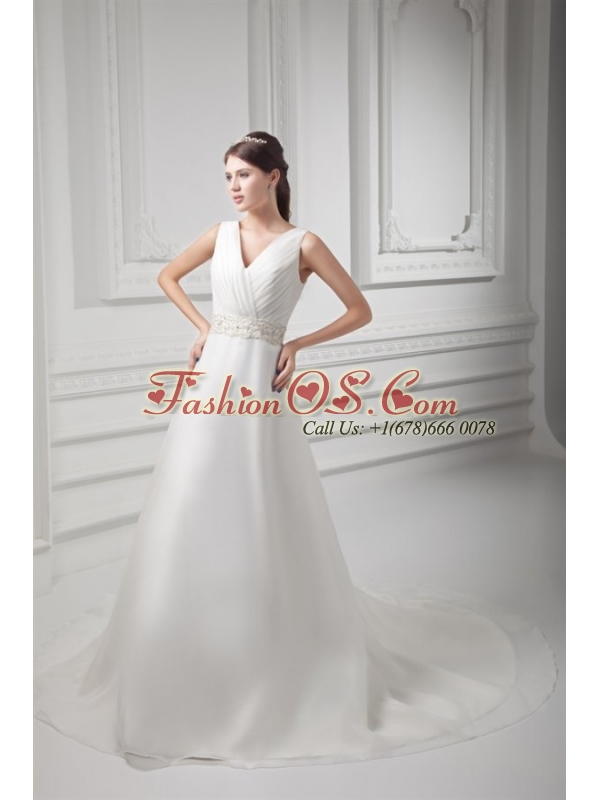 Home >  Wedding Dresses >  Perfect Wedding Dresses > Elegant A-line V-neck Court Train Wedding Dress with Beading and Ruching
