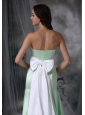 Elegant Apple Green Evening Dress Column Strapless Brush Train Satin Sash