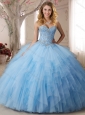 Elegant Applique and Ruffled Tulle Perfect Quinceanera Dress in Light Blue