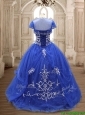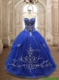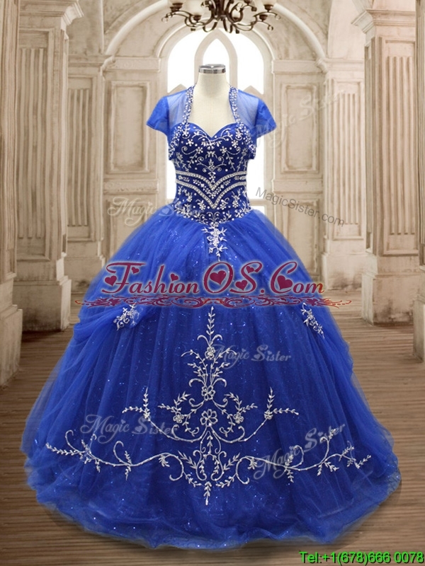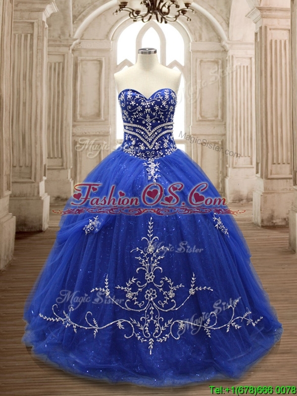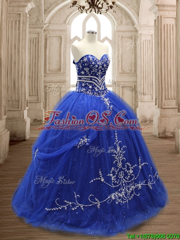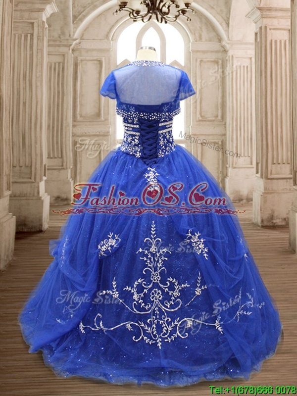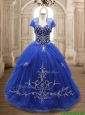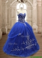 Elegant Applique Royal Blue Sweet 16 Dress with Brush Train