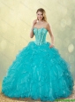 Elegant Aqua Blue Detachable Quinceanera Dresses with Beading and Ruffles