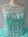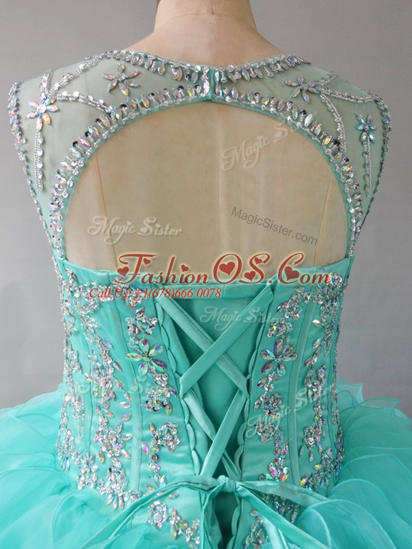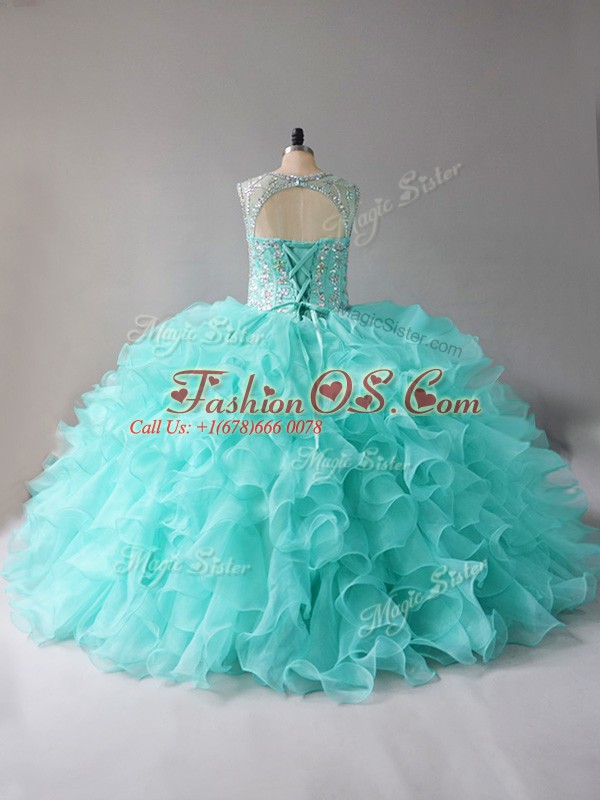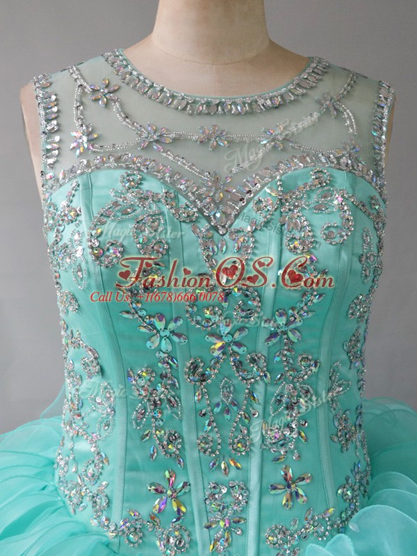 Elegant Aqua Blue Quince Ball Gowns Sweet 16 and Quinceanera with Beading and Ruffles Scoop Sleeveless Lace Up