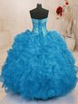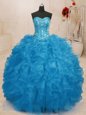 Elegant Baby Blue Lace Up Vestidos de Quinceanera Beading and Ruffles Sleeveless Floor Length