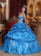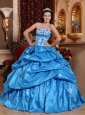 Elegant Baby Blue Quinceanera Dress Strapless Taffeta Appliques Ball Gown