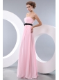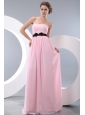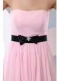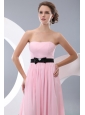 Elegant Baby Pink Empire Strapless Belt Bridesmaid Dress Brush Train Chiffon