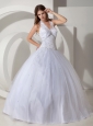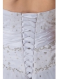 Elegant and delicate. Perfect for your special wedding day! It features a deep V-neck with ruched designed under the bust. Sparkling beading scatters throughout the bodice which continues to the hip. The favroable ball gown skirt flows flaringly to the floor which gives a perfect look. When you dance, it moves wonderfully. And the classic lace up closure adds the charm.