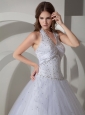 Elegant Ball Gown Halter Wedding Dress Taffeta Beading Floor-length